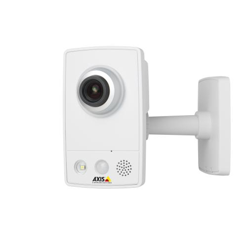 The AXIS M1034-W integrates a passive infrared (PIR) sensor for detecting movement – even in the dark. It includes a white LED for illuminating the scene automatically at an event or when requested by the user. It also offers two-way audio communication with integrated microphone and speaker, allowing remote listening in on an area as well as communication with individuals directly or using recorded audio clips.