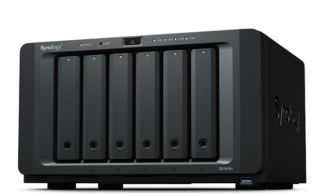 DS1618+ is a 6-bay NAS that provides storage scalability perfect for tech enthusiasts and small- to medium-sized businesses by effortlessly handling workloads. Further boost storage performance with the optional M.2 SSD cache or enhance network speeds by adding a 10 GbE NIC.