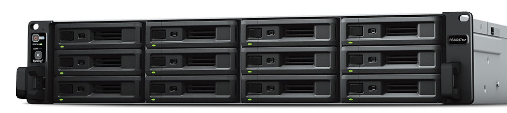 RS18017xs+ is built for flexible storage management with ultra-high performance at over 568,000 sequential read IOPS and 4,800 MB/s sequential read throughput. DDR4 ECC RDIMM and 10GbE connectivity guarantees data accuracy and performance for mission-critical environment.