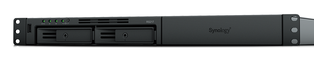 Synology RackStation RS217 is a 2-bay rackmount NAS powered by a dual-core CPU with hardware encryption engine and comes with dual 1GbE LAN ports, providing excellent network performance and rich business features.