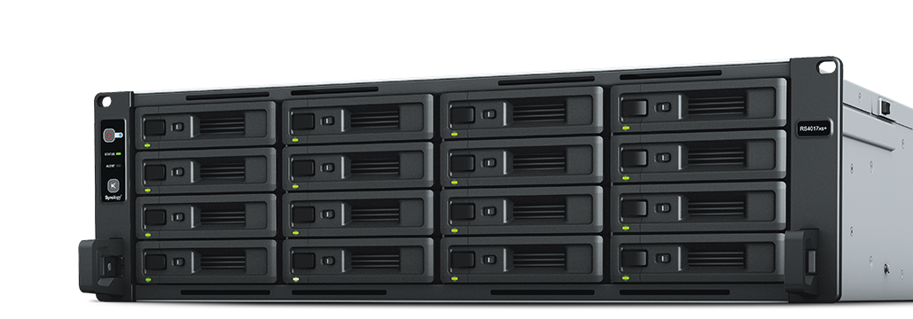 RS4017xs+ provides rock-solid storage solution with ultra-high performance at over 844,000 sequential read IOPS and 5,900 MB/s sequential read throughput. DDR4 ECC UDIMM and 10GbE connectivity guarantees data accuracy and performance for mission-critical environment.