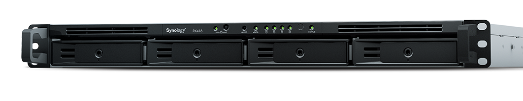 When the storage capacity on Synology 1U RackStation reaches its limit, Synology expansion unit RX418 provides easy capacity expansion by adding 4 3.5″/2.5″ SATA drives to the system. Synology RX418 can also be used as a dedicated local backup destination of Synology 1U RackStation for comprehensive data protection.
